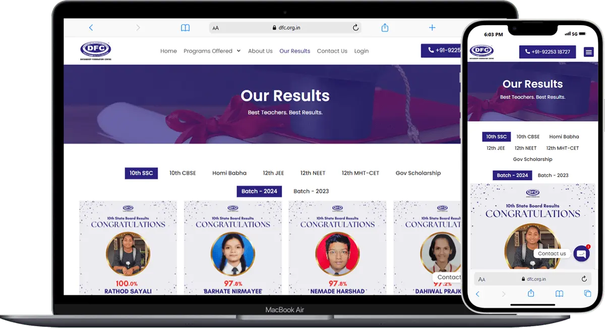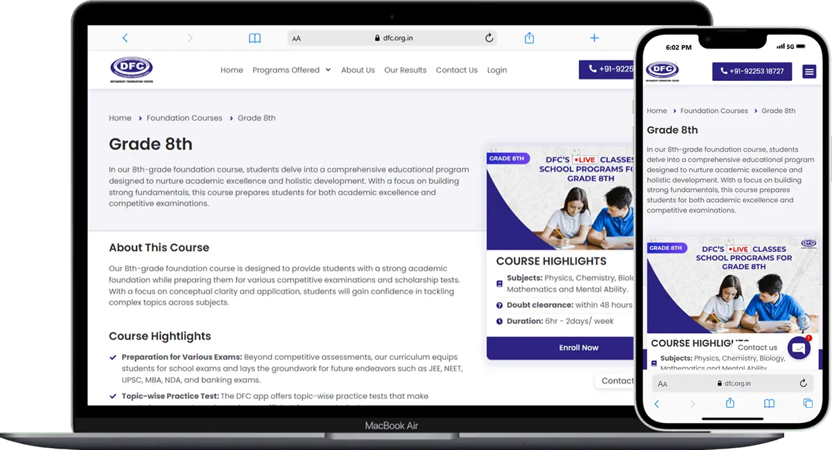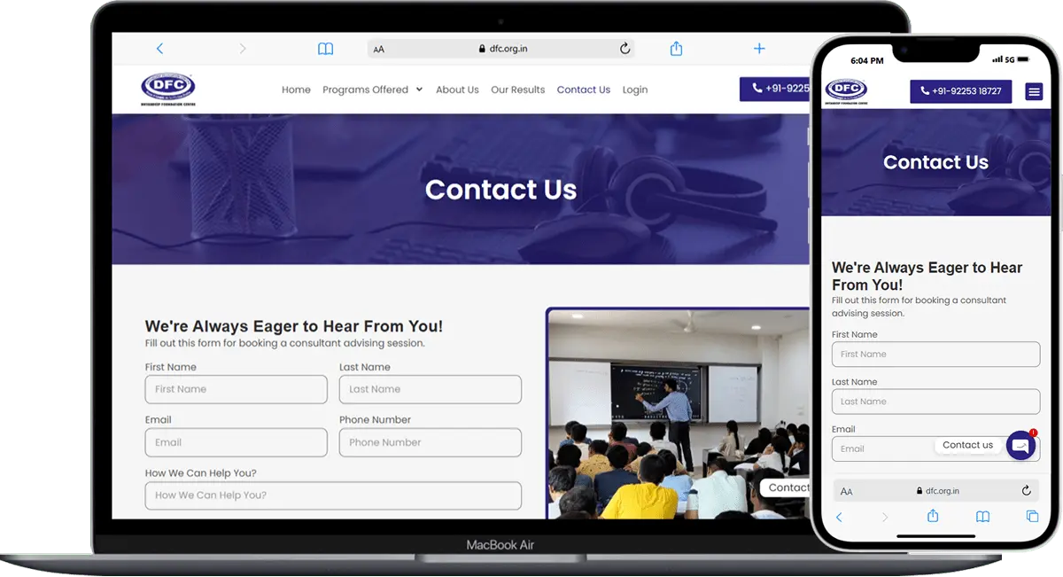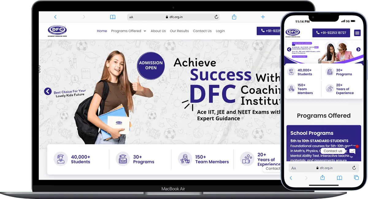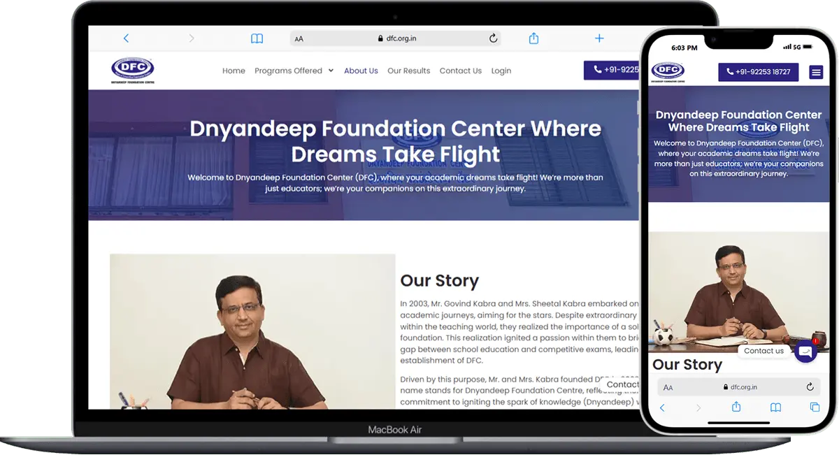 Dnyandeep Foundation Centre (DFC) is a coaching institute focused on competitive learning, encouraging self-competition with the mindset of “Going Ahead from Wherever We Are.” We developed a complete website to enhance DFC’s online visibility and create an easy platform for students and parents to inquire about admissions. The website aims to streamline the admission process, promote DFC’s values of self-driven progress, and expand the institute’s reach to a broader audience.